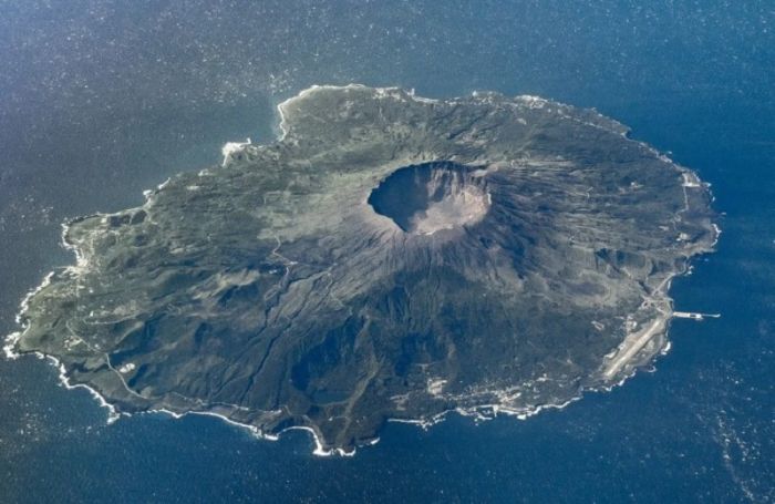 Крошечный островок, в центральной части которого располагается крупный вулкан Ояма. Во время последнего извержения в 2000 году жители этого острова пострадали от выброса из толщи земли облака ядовитого газа.