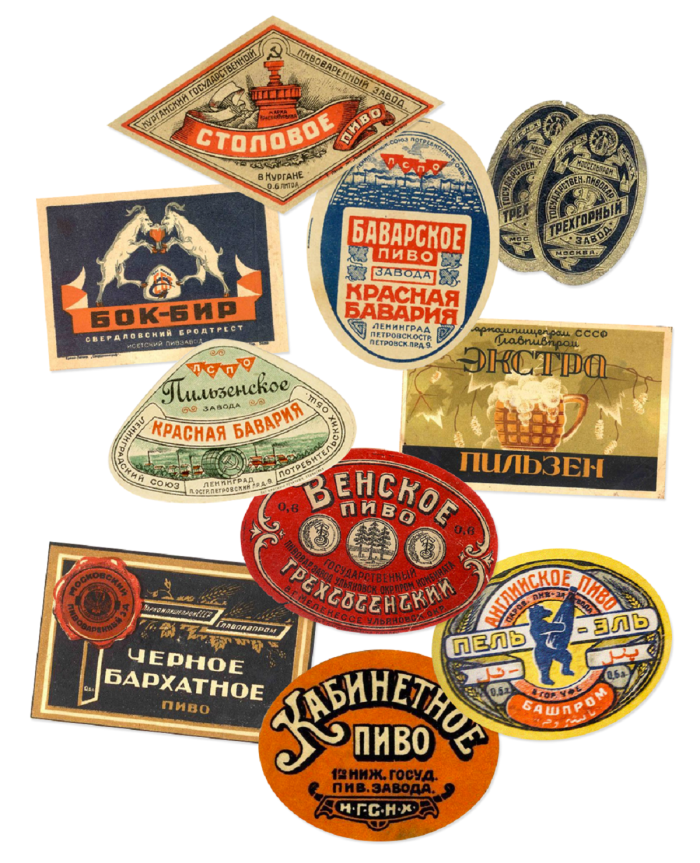 Какое же пиво варили в то время? Те же самые сорта, что и до революции. Это прогерманские марки: «Баварское», тёмное «Мюнхенское», «Кульмбахское», «Экспорт», крепкий «Бок»; австрийские и чешские марки (Чехия до Первой мировой войны входила в состав Австро-Венгрии): «Венское», «Богемское», классическое «Пильзенское» и его более плотные, «экспортные» версии («Экстра-Пильзен»). В традициях английского пивоварения варили тёмный плотный портер и светлый пейл-эль. Очень популярными были (скорее всего, из-за его невысокой плотности, а значит, и малозатратности) «Столовое», тёмное «Мартовское», сохранились и некоторые самостоятельные российские марки, хотя и они возникли под влиянием западноевропейского пивоварения: «Кабинетное», «Двойной золотой ярлык». Единственный исконно русский сорт пива — это «Чёрное», а также его версия «Чёрное бархатное». Этот сорт пива не выбраживался полностью, так же как и традиционный русский квас. Оно имело при высокой плотности очень низкую крепость и почти не было известно в Европе.