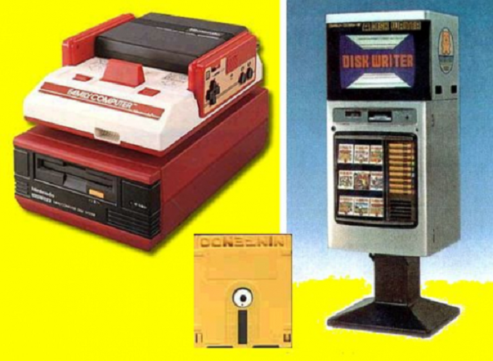 В 1985 году Nintendo выпустили в Японии аксессуар Famicom Disk System для своей восьмибитной консоли, позволяющий запускать игры с дискет. Проекты, выпущенные эксклюзивное для FDS, были первыми играми с возможностью сохранения — сам флоппи-диск с игрой одновременно использовался и как карта памяти. В числе таких игр были The Legend of Zelda, Final Fantasy, Metroid и другие, позже выпущенные на классических для Famicom носителях, но со встроенной батарейкой.