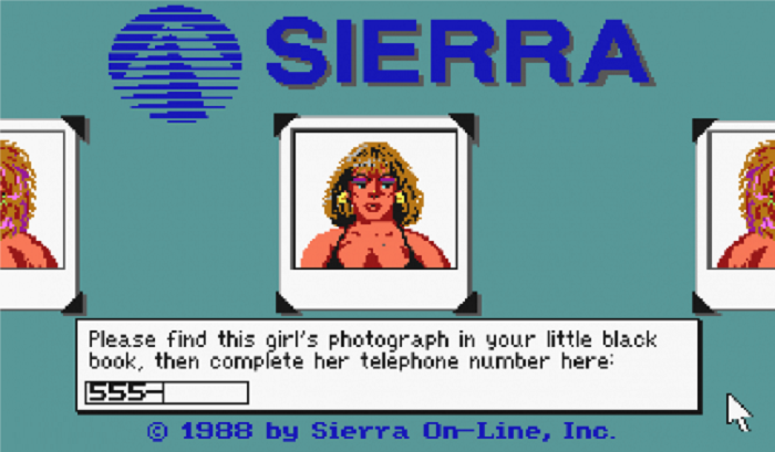 Например, в 1988 году игра Leisure Suit Larry Goes Looking for Love (in Several Wrong Places) перед запуском показывала изображение женщины. Чтобы разблокировать экран, необходимо было найти эту же картинку в инструкции и ввести в консольную строку номер телефона, указанный рядом с изображением определенной девушки.