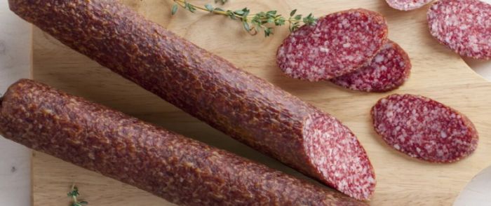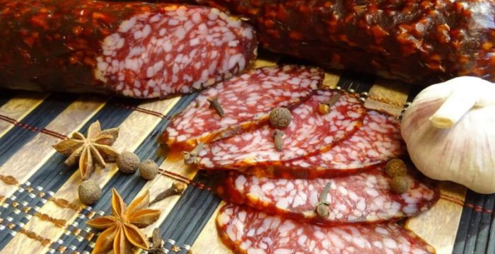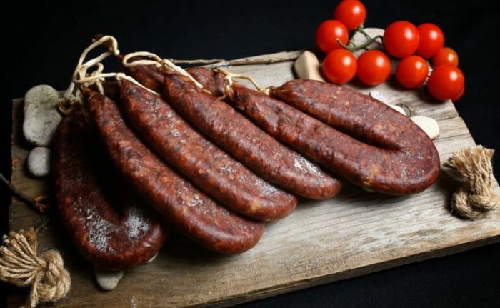 Также от других сортов колбаски отличались еще и тем, что перед сушкой их подвергали основательному прессованию, что и позволяло получить несколько необычную для колбасы форму.