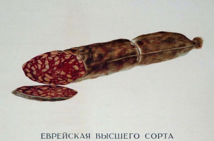 Иллюстрация из альбома "Колбасы и мясокопчености" 1938 года издания