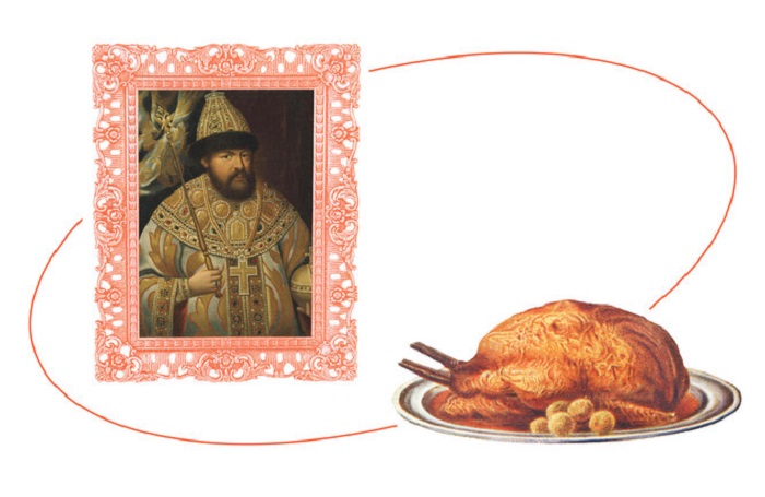 Петр I по меркам своей династии вел абсолютно спартанский образ жизни и в еде был весьма неприхотлив, хотя и любил выпить. На завтрак ему подносили студень с хреном, ржаной хлеб, соленый огурец и рюмку водки. И никаких тебе жареных лебедей. Обед у Петра обычно был обильным и сытным: наваристые щи, запеченная курица или баранина, перловая каша, пироги с зайчатиной, салом и творогом — в общем, очень калорийная пища, позволявшая первому русскому императору, известному своей кипучей энергией, много работать и сохранять бодрость до глубокой ночи. Рыбу Петр не ел вообще — от нее он страдал аллергией и покрывался сыпью. Не ел Петр и сладкого, но не из-за проблем со здоровьем, а потому, что считал это ненужным баловством. И не только сам не ел, но и дочерям, Анне и Елизавете, не велел подавать. Почему? Потому что слишком дорого, а пользы никакой. Лучше на корабельные дела отложить. И это не шутка.