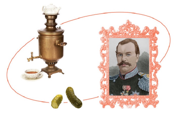 Если взглянуть на «гастрономическое расписание» Александра I, то мы увидим обычного человека с набором личных пристрастий: «в Царском Селе государь постоянно соблюдал весною и летом следующий порядок: в 7-м часу утра кушал чай, всегда зеленый, с густыми сливками и поджаренными гренками из белого хлеба... в 10 часов возвращался с прогулки и иногда кушал фрукты, особенно землянику, которую предпочитал всем прочим фруктам. В 4 часа обедал. После обеда государь прогуливался или в экипаже, или верхом. В 9-м часу вечера кушал чай, после коего занимался работою в своем маленьком кабинете; в 11 часов кушал иногда простоквашу, иногда чернослив, приготовляемый для него без наружной кожицы». Причем зеленый чай утром и простокваша с черносливом вечером — это рекомендация медиков, заботившихся о пищеварении государя.
