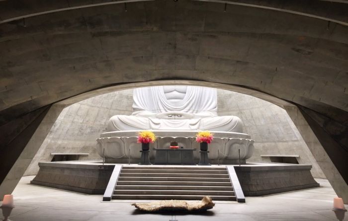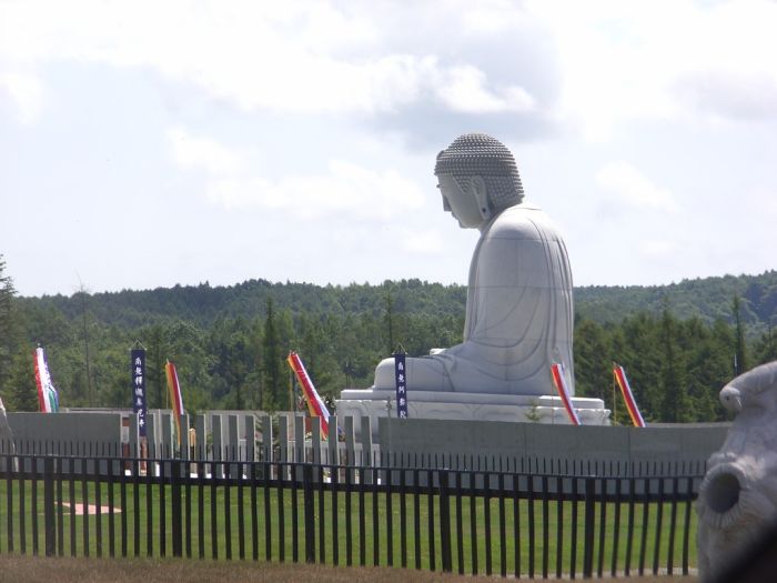 На окраине Cаппоро в Японии находится кладбище Макоманай Такино (Makomanai Takino Cemetery). Установленный в 1982 году Большой каменный Будда на протяжении 15 лет одиноко стоял посреди поля, производя не очень благоприятное впечатление. Кладбище решило создать для посетителей более безмятежную атмосферу и призвало знаменитого японского архитектора Тадао Андо создать изящный скульптурный комплекс и облагородить Будду.