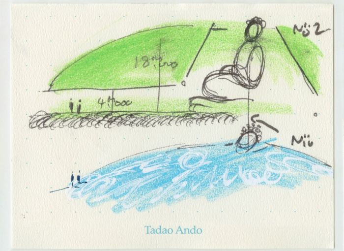Андо предложил скрыть 14 метрового Будду посреди лавандового холма, открыв для посетителей лишь его голову. В основе холма проложен 40 метровый тоннель, который ведет к заполненной естественным светом ротонде, окружающей статую. Оказавшись в смотровом зале, посетители смотрят вверх на Будду, голова которого окружена небесным ореолом.