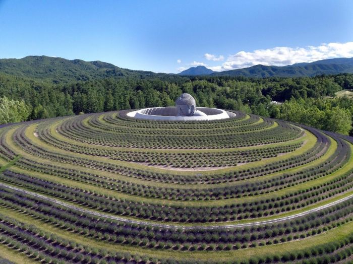 Холм Будды засажен 150,000 кустами лаванды, которые меняют цвет на свеже-зеленый весной, бледно-фиолетовый летом и заснеженный зимой. Кладбище открыто с 9:00 до 16:00 с апреля по октябрь и с 10:00 до 15:00 с ноября по март. Пожертвование в размере 300 японских иен требуют для поддержания лавандового поля и окружающей инфраструктуры. Теперь список известнейших статуй Будды пополнился еще одним интересным экземпляром.