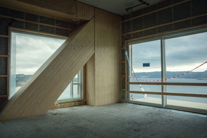 18-этажное многофункциональное здание «Мьёсторнет» построено в 2019 году. Его название переводится как «башня озера Мьеса» — в честь самого большого озера Норвегии, на берегу которого он, собственно, и построен. Поскольку основные конструктивные элементы и перекрытия здания построены из древесины, оно считается деревянной конструкцией.