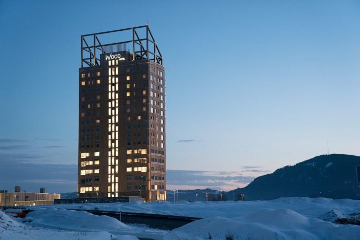 Звание самой высокой в мире деревянной постройки небоскребу Mjøstårnet официально присудил Международный совет по высотным зданиям и городской среде (CTBUH). Башня высотой 85,4 метра построена в городе Брумунндал (норвежская коммуна Рингсакер) в полутора часах езды от Осло. Ранее этот статус носило студенческое общежитие в Ванкувере — оно достигает 53 метров в высоту.