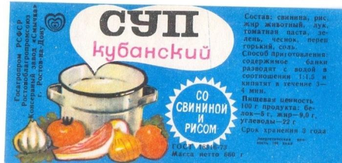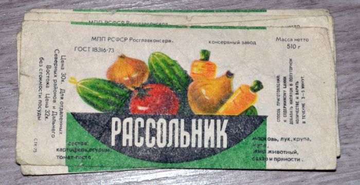 Все это фасовалось по банкам, укупоривалось, стерилизовалось и в таком виде отправлялось на реализацию. Покупателю оставалось разбавить этот полуфабрикат водой и подогреть, чтобы получить полноценное первое блюдо.