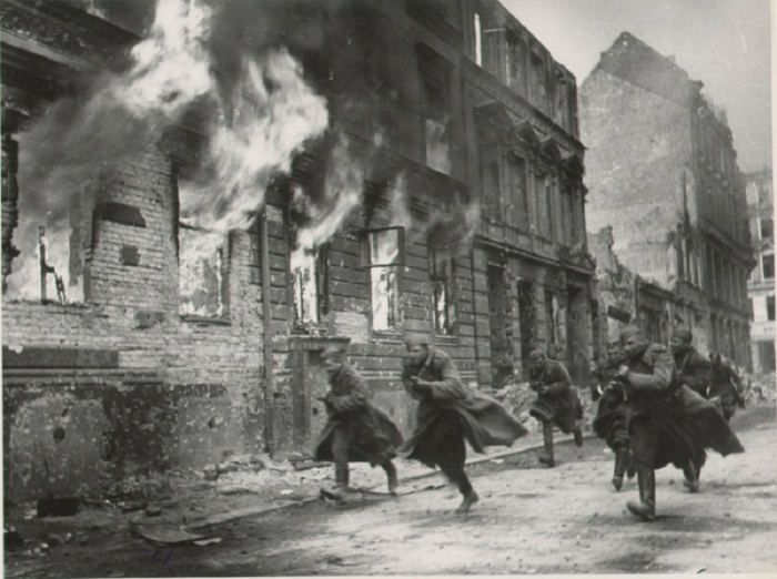Когда русские солдаты ушли Эрих и его товарищи принялись жечь свои документы и личные вещи. Как он сам напишет позже "Всего несколько часов назад на нас была форма, которой мы всю свою жизнь гордились, теперь же походили на оборванных бродяг". Выйдя со склада Эрих вновь натолкнулся на советских солдат. Комиссар узнал его и предложил отпраздновать Победу: