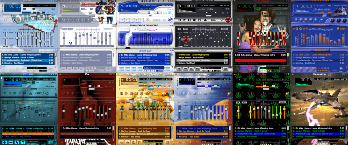 Разработчики публиковали гайды по созданию скинов и призывали пользователей загружать работы на официальный сайт Winamp. К 2001 году там уже было около 3 тысяч разных тем — и это только на одном ресурсе. Вокруг Winamp собирались целые сообщества любителей, которые делали скины. Иногда авторов хватало только на то, чтобы поменять цвета, другие вдохновлялись фильмами, сериалами и играми, а третьи уходили в эксперименты.