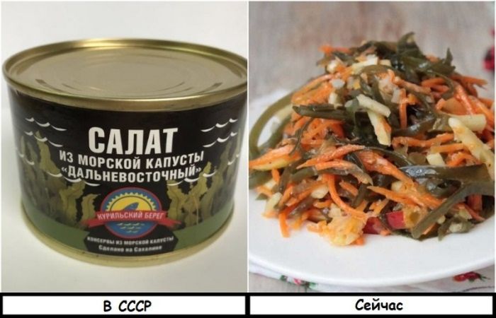 В СССР многие продукты и вещи были в дефиците. Однако консервы с «морской» начинкой в этот список не входили. Прилавки буквально ломились от самых разных вариантов. Самыми популярными консервами среди советских красавиц, которые следили за своей фигурой, был салат «Дальневосточный».