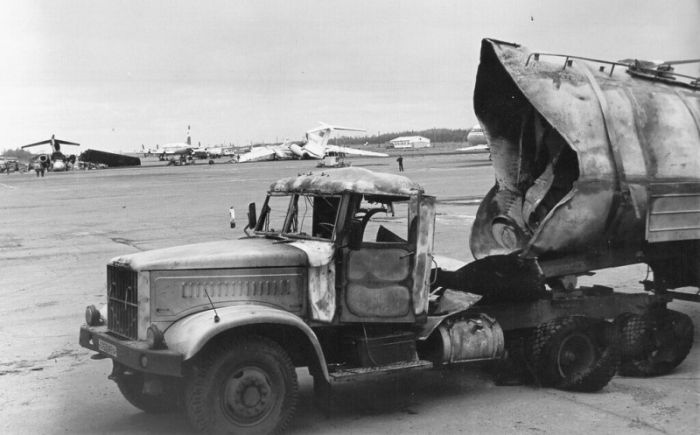 Сгоревший топливозаправщик ТЗ-22-258