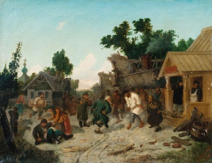 Картина «Деревня старит — кабак новит», худ. Леонид Иванович Соломаткин, XIX век
