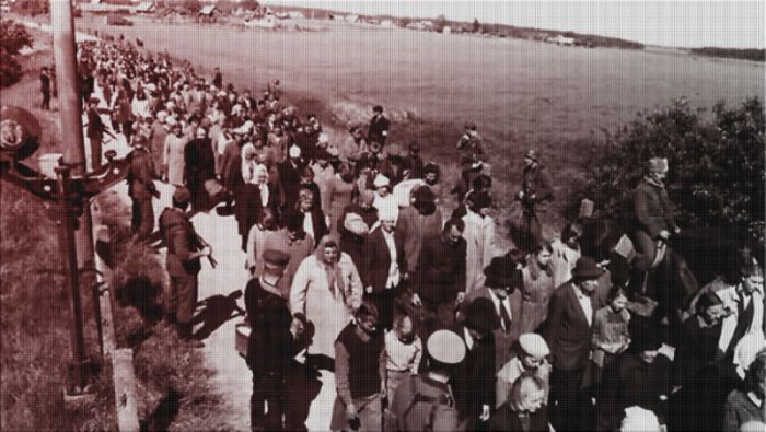Люди идут к Бабьему Яру