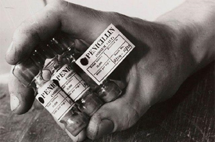 Уже к июню 1943 года пенициллина было столько, что армия США снизила закупочную цену на него с 20 тысяч баксов за флакон 1 млн единиц -- до 200 баксов за флакон. А к 1945 году -- до 20 центов за флакон
