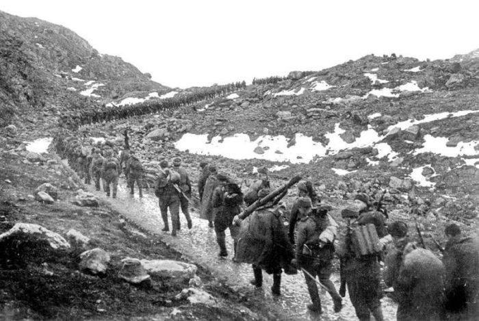 Чтобы сокрушить защитников хребта, немецкое командование выделило элитный горнострелковый корпус "Норвегия", в состав которого входили опытные австрийские стрелки-егеря. Немецкая атака началась 29 июня 1941 года, и первоначальный натиск "Норвегии" заставил советские войска отступить к полуострову, перейдя к обороне перешейка. Последовавшие за этим немецкие штурмы на протяжении двух недель не давали никаких результатов, и противник вынужден был отступить, внезапно атакованный 135-м стрелковым полком, который сумел отбить у немцев северный склон хребта, сумев там закрепиться. С этих пор на протяжении трех лет в Муста-Тунтури шли непрекращающиеся кровопролитные бои - немцы во что бы то ни стало пытались прорваться на полуостров Средний, чтобы открыть себе путь к мурманскому порту, где базировался северный флот.