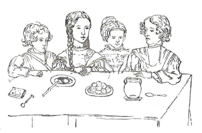 Дети Пушкина. Мария - вторая слева. Рис. Н.И. Фризенгоф. 1841 г.
