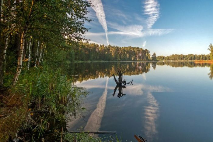 Природа на острове и вокруг водоема очень живописная: много деревьев, в том числе сосен и елей. В озере обитают различные речные рыбы: окунь, щука, плотва, карась, карп и лещ. Ловить рыбу здесь можно, но необходимо заплатить за разрешение на рыбалку. Живут около озера бобры, которые валят деревья, подгрызая их у основания.