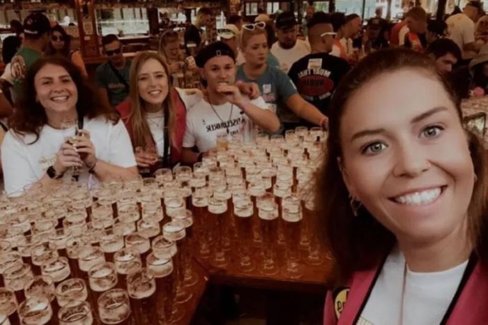За три часа они выпили более 600 литров пива, а если быть точнее, то 1254 стаканов. Группа, возглавляемая 62-летним немецким бизнесменом Каем Уве Кахманном, никогда до этого не встречалась и лично они друг друга не знали. А собрались они для того, что бы побить предыдущий рекорд, установленный там же другими немцами. Те же любители пенного выпили за 3 часа 1111 стаканов пива.