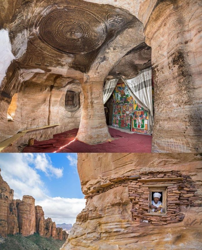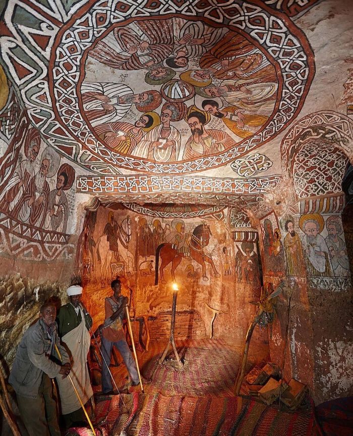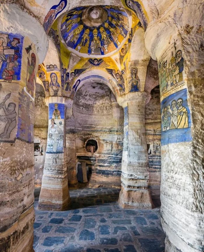 Церковь известна своими прекрасно сохранившимися фресками, украшающими внутренние стены и потолки и изображающими сцены из Библии и истории эфиопского христианства. Чтобы добраться до нее, необходимо взобраться на крутую скалу, в которой высечены отверстия для рук и ног. Это одна из 35 церквей в Эфиопии, построенных на таких высотах.