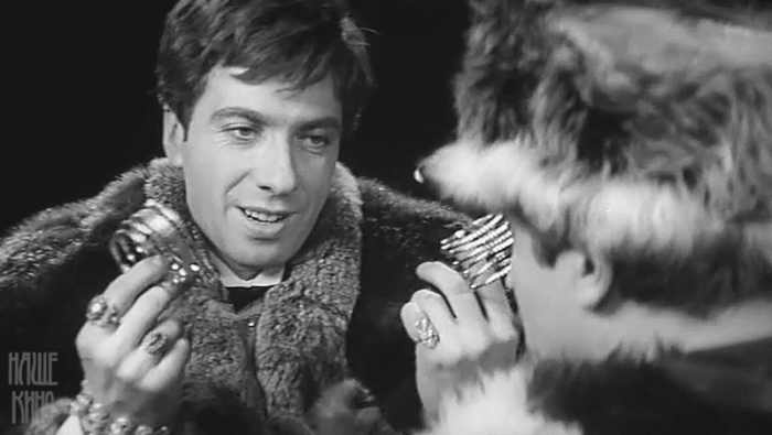 «Сейчас в кармане у него в плоской железной коробке от папирос «Кавказ» лежало десять тысяч рублей бумажками, достоинством по двадцать пять червонцев каждая. Но если бы даже он сошёл с ума и решился бы обнаружить хотя бы одну бумажку, всё равно ни в одном кинематографе нельзя было разменять».