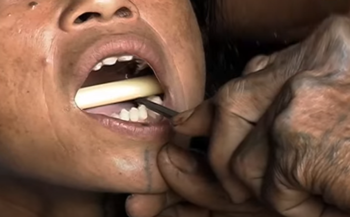 Никакого обезболивания, конечно же, тут не придумано. Девочкам обычно подпиливают зубы в подростковом возрасте. Они зажимают деревяшку во рту, чтобы не дергать языком, и терпят шлифовку зубов долотом.