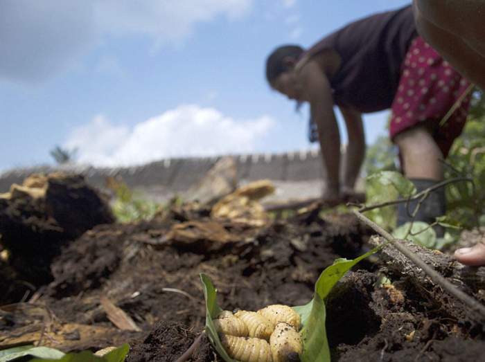 Питаются они охотой и рыбалкой, а женщины ходят с голой грудью. А еще они выдалбливают пальмы, чтобы достать из них саго – такая мука, из которой делают лепешки. Самое вкусное – питательные жирные гусеницы, которые находятся под упавшими деревьями.