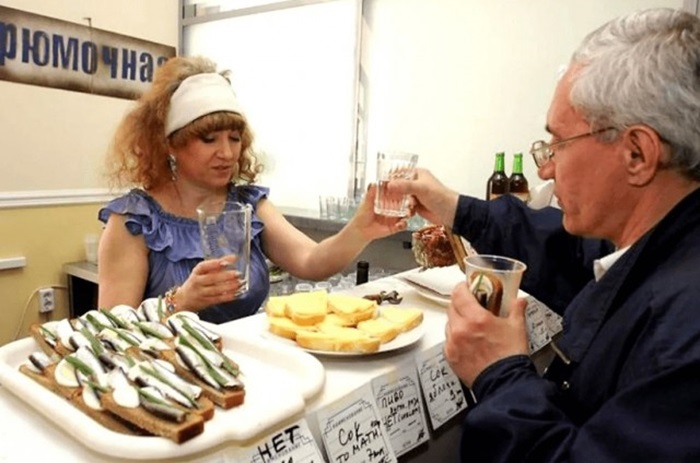 2. В продолжение культуры пития и сделали обязательным «прицеп» - бутерброд, без которого порция водки не выдавалась. Его стоимость уже входила в те самые 1,05руб. Кстати, рецептура бутербродов была четко подобрана советскими диетологами по формуле 1:1:4 (белки, жиры, углеводы) – идеальное сочетание калорий для человеческого организма.