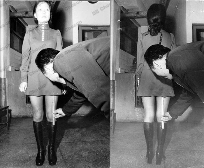 Это сегодня корейцы славятся своими развеселыми молодежными поп-группами, яркими нарядами и фантастической модой. Во время президентства (или правильнее будет сказать диктатуры) Пак Чон Хи в стране официально запретили мини-юбки и длинные волосы у мужчин. Допустимая длина прядей в законе не была указано. Полицейские определяли на глаз: если мужчину из-за прически можно спутать с дамой, значит, парня нужно доставить в участок и насильно постричь. Только в 1973 году остригли больше 12 тысяч молодых людей.