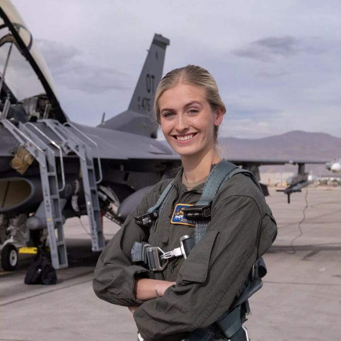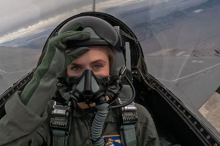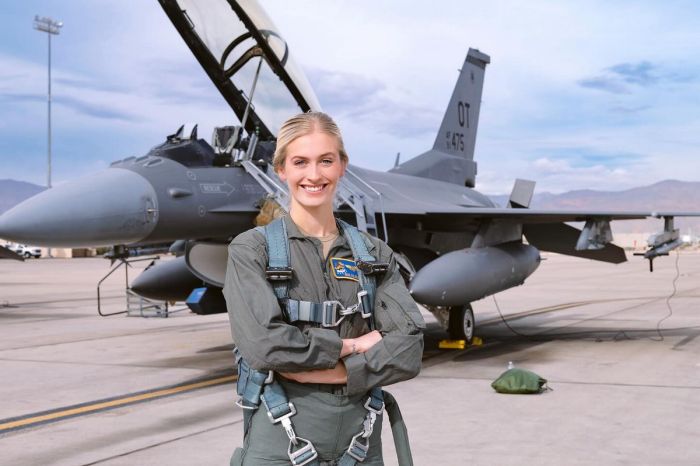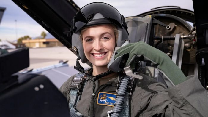 В своем выступлении на конкурсе талантов Марш рассказала, как получила лицензию пилота в 16 лет.