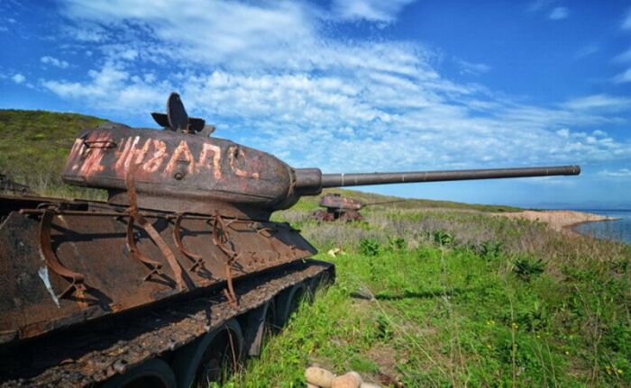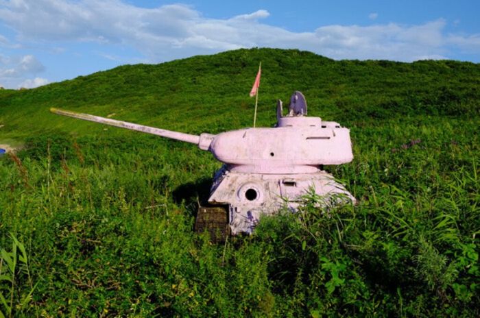 В Приморье в Архипелаге Императрицы Евгении в заливе Петра Великого есть остров Желтухина, который также носит неофициальное прозвище «Остров погибших танков». Если отправиться туда в путешествие, то можно стать свидетелем интереснейшей картины. Живописные склоны этого красивого места разбавлены ржавыми ранами в виде старых советских танков. Разбросаны они почти по всему острову.
