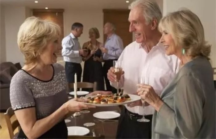 Очень часто торжество проходит в режиме стоя. Стол не накрывается, стулья вокруг него не ставятся. Вы просто приходите в гостиную, где есть два стола - один с холодными закусками, а второй - с алкогольными и безалкогольными напитками и всевозможными бокалами. Также в США категорически не принято настаивать на том, чтобы гости выпивали алкоголь (эдакий антипод России в данном случае имеет место быть). Каждый гость сам берет бокал и наливает себе то, что он хочет, будь то виски или чистая питьевая вода.