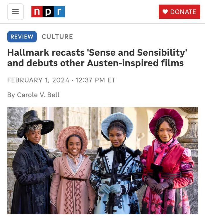 «Hallmark переснял «Чувства и чувствительность»: Почернела викторианская Англия - в новой экранизации романа Джейн Остин в Англии XIX века дворянская семья состоит из темнокожих членов, а прислуга – преимущественно белые.