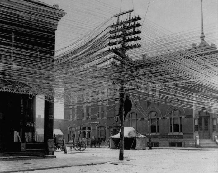 Кроме чисто практического вреда от электричества был и вред эстетический. Забавно, что он казался людям едва ли не страшнее. Американские газеты 1900-х пестрят заголовками, в которых репортеры сокрушаются о том, что электрические столбы и провода испоганили облик городов. Журналист Reporter’s Notebook отчаянно и наивно призывает жителей Нью-Гемпшира не валить и не поджигать столбы (как видите, история с вышками 5G не нова).