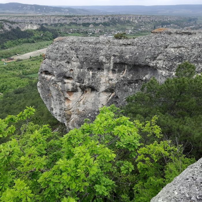 Необычный пещерный город находится во Внутренней скальной гряде, расположенной в долине реки Качи. Город возвышается на высоте 510 м. над уровнем моря. Скала имеет высоту 120 м. и похожа на нос корабля. Если смотреть на скалу издалека, то кажется, что «корабль» плывет по воде.