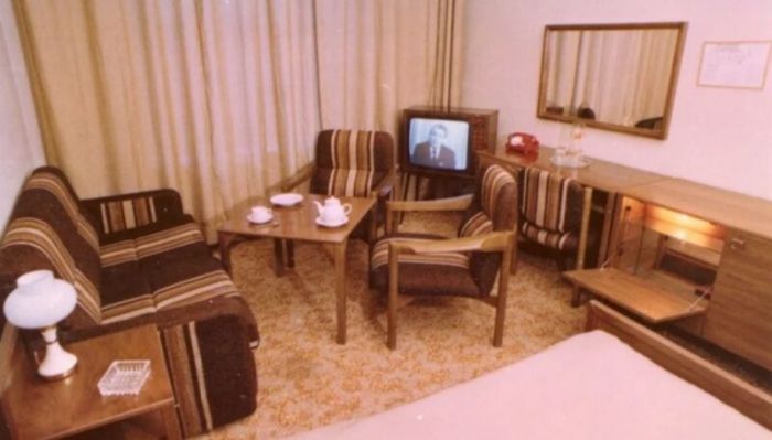 В СССР всегда было непросто обзавестись хорошей мебелью. Большинство граждан довольствовались уродливыми поделками отечественной промышленности. Но если у людей был небольшой шанс найти что-то минимально отталкивающее, а иногда даже сносную продукцию из ГДР или Польши, то гостиничные номера обставляли стандартными «монстрами» из дешевого ДСП.