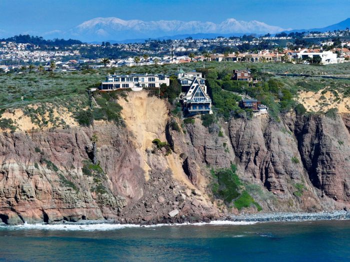 Житель города Дана-Пойнт в Южной Калифорнии не хочет покидать свой особняк, балансирующий над краем пропасти. При этом дом стоимостью в $16 миллионов может смыть в Тихий океан уже при следующем значительном ненастье.