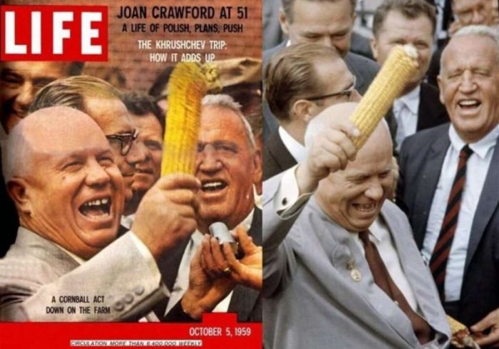 Ну и, пожалуй, самым знатным развлечением Хрущёва была кукуруза. В сентябре 1959 года Хрущёв посетил США, где в штате Айова он увидел обширные кукурузные поля. Идея высаживать кукурузу Хрущёву настолько понравилась, что уже вскоре после его возвращения в СССР с энтузиазмом начали выращивать кукурузу по всей европейской части СССР: от Черного до Белого моря. И не суть важно, что кукуруза не везде росла из-за холодного климата, важно то, что Хрущёв загорелся идеей, очередной "взрослой игрушкой".