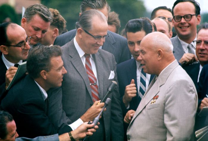Ещё одна история произошла с Хрущёвым в том же 1959 году в США. Там Хрущёв очень хотел посетить Диснейленд. Особенно он горел желанием увидеть замок Микки Мауса. Посетить его Хрущёву не удалось из-за помидора. Кто-то бросил в автомобиль, в котором ехал Хрущёв, помидор, и тогда из соображений безопасности было приятно решение не пускать Хрущёва в Диснейленд. В результате Никита Сергеевич так и не увидел ни Микки Мауса, ни Дональда Дака, ни Гуфи.