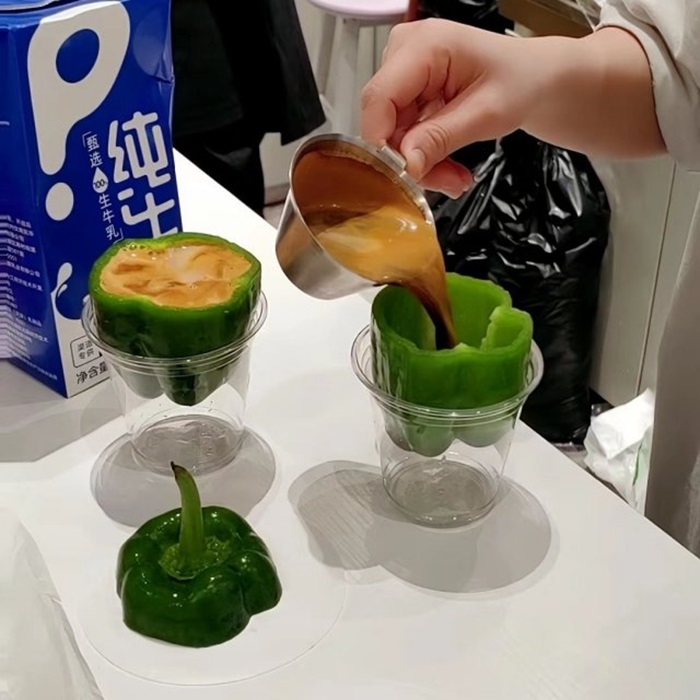 Тут все проще - кофе просто подают в очищенном от семечек болгарском перце. Экологично, так сказать.