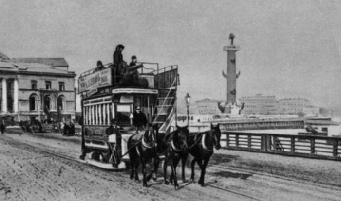 В то время, когда в конце 19-го века трамваи бегали по улицам Москвы, Нижнего Новгорода, Курска, Орла, Казани и Севастополя, городские власти Петербурга отказываться от конок не собирались. В северной столице два лошади тянули по рельсам металлический вагон, а управлял ими со специальной площадки вожатый. Проезд стоил 5 копеек, на крыше — 3 копейки, и конка приносила солидные доходы Акционерному обществу конных железных дорог.