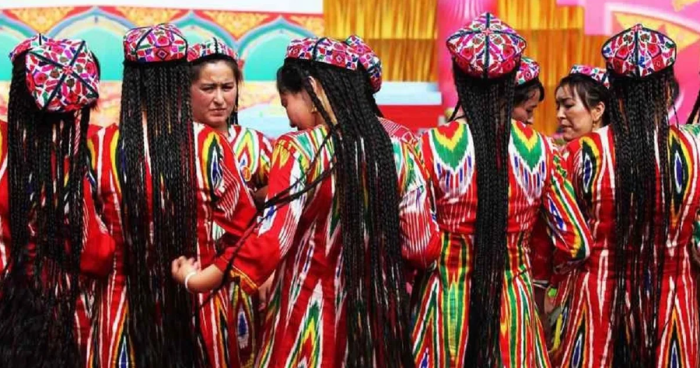 Стандартно на голове узбечки должно быть 40 косичек. При этом носит она их ДО замужества в юности.