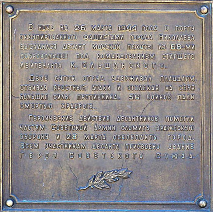 Такова, если коротко, история десанта. А тот, кто желает узнать об этой героической странице истории Николаева, может посетить народный музей боевой славы моряков-ольшанцев, который при помощи Николаевского морпорта был открыт в 1964 году. Экспозиция музея, бережно хранящаяся на протяжении многих десятилетий, убедительно рассказывает о незабываемых событиях марта 1944 года.