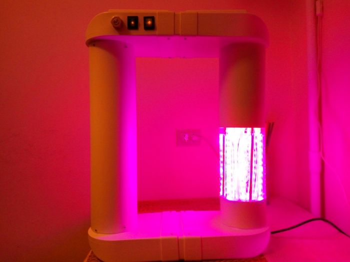 Источники излучения — светодиоды с длинами волн излучения 440-460 нм, синий цвет, и 650-660 нм, красный.