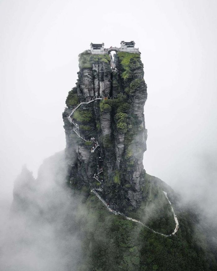 Гора Фаньцзиншань расположена в китайской провинции Гуйчжоу, и там она считается священным местом для местных буддистов, а оттого одним из наиболее посещаемых достопримечательностей, и получила статус объекта Всемирного наследия ЮНЕСКО. Высота горы составляет 2572 метра над уровнем моря, благодаря чему с ее вершины можно разглядеть окружающие возвышенности.
