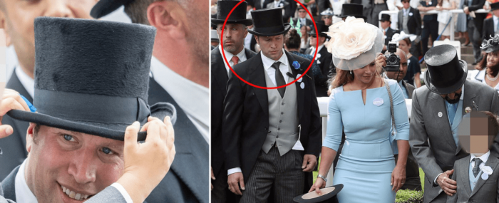 На фото: Охранник Рассел Флауэрс рядом с принцессой Хайей и её мужем, эмиром Дубя (справа на фото в цилиндре) во время их поездки в Великобританию
