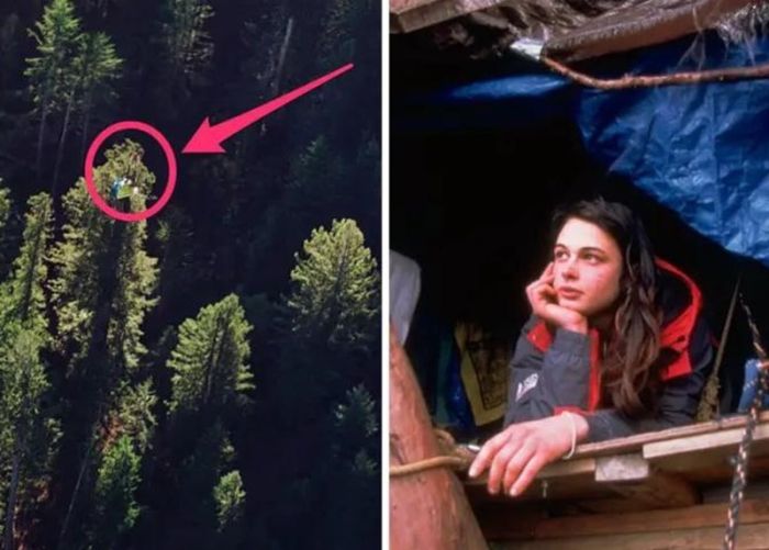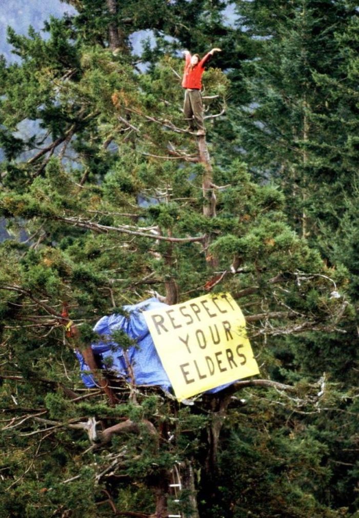В 1997 году Джулия Хилл забралась на 70-метровое 1000-летнее калифорнийское красное дерево и не спускалась с него в течение 738 дней, чтобы помешать лесозаготовителям из компании Pacific Lumber Company его срубить.
