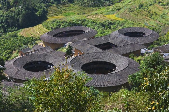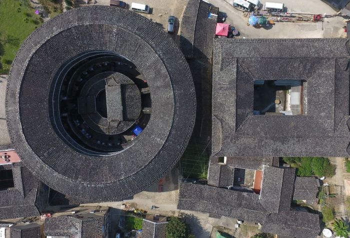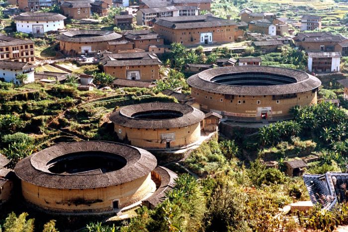 Издалека они похожи на огромные рыже-красные муравейники или ульи. Когда-то в них размещались целые родовые общины. Это так называемые тулоу, или «земляные замки» — жилые комплексы крепостного типа, распространенные с XII века на территории современных китайских провинций Фуцзянь и Гуандун.